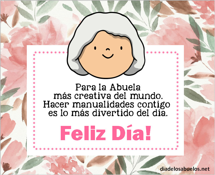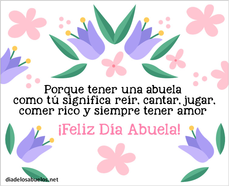 Una abuela representa a una madre para mucho de nosotros, por eso no hay nada más hermoso que enviarle bonitas frases de feliz día de la abuela. El objetivo de la frase es que tu abu se emocione y se ponga muy contenta por eso es importante elegir la frase perfecta que se adapte más a vos. Todas las frases son bonitas, pero seguro una sola se identificará más por lo que sientes por tu abuela, El día de la abuela es una fecha especial y maravillosa para compartir con los nietos e hijos. Imágenes de felicitaciones originales para dedicar a todos tu abuelita.