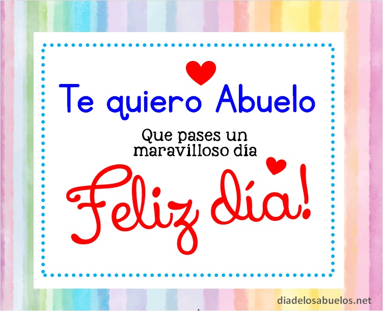 Encontrar las palabras perfectas para describir cuánto significan para ti tu abuela o tu abuelo no siempre es fácil. Tu abuelo siempre estará presente en tu corazón. Este o no presentes en tu vida. Para celebrar su día te dejamos una recopilación de imágenes que puedes enviarle a tu abuelo en su fecha especial. Un abuelo es irremplazable en el corazón de un niño; Festeja el día de tu abuelo de forma original, regálale una bonita tarjeta, salúdalo de una forma colorida y dale un regalito especial si no cuentas con dinero te ofrecemos también manualidades.