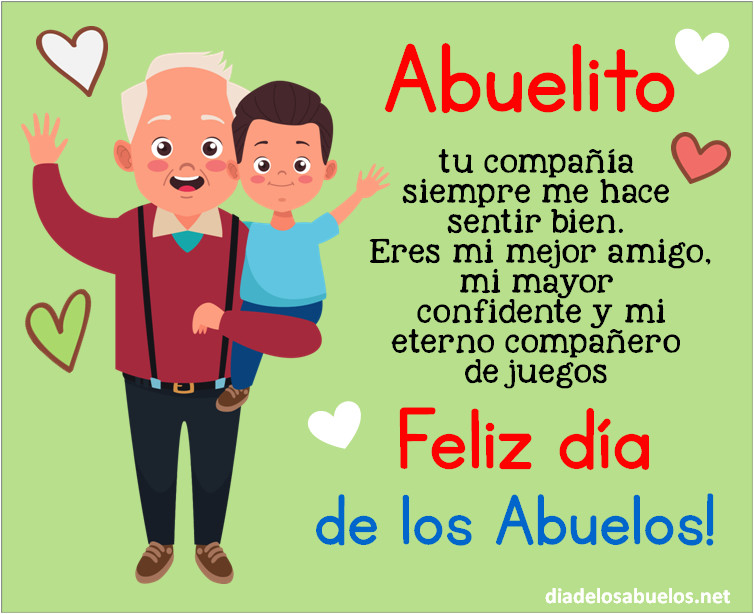 10 Abuelito, tu compañía siempre me hace sentir bien. Eres mi mejor amigo, mi mayor confidente y mi eterno compañero de juegos, Feliz día de los Abuelos!