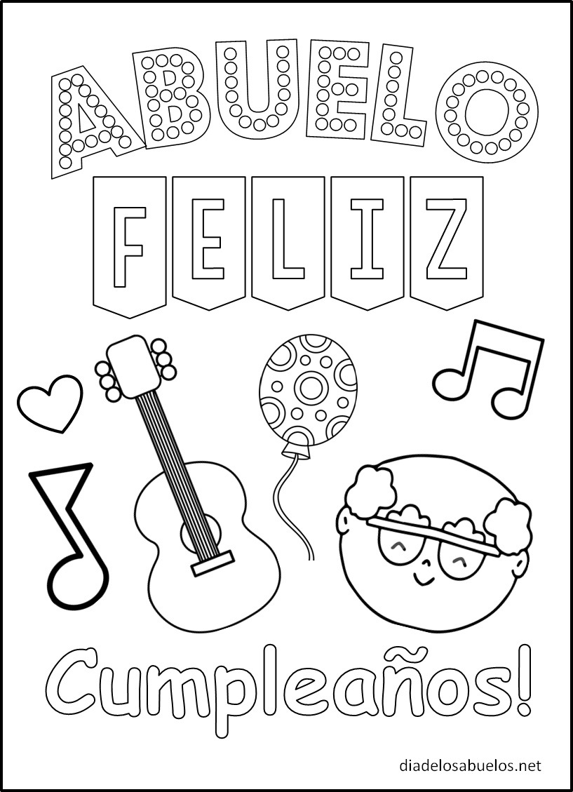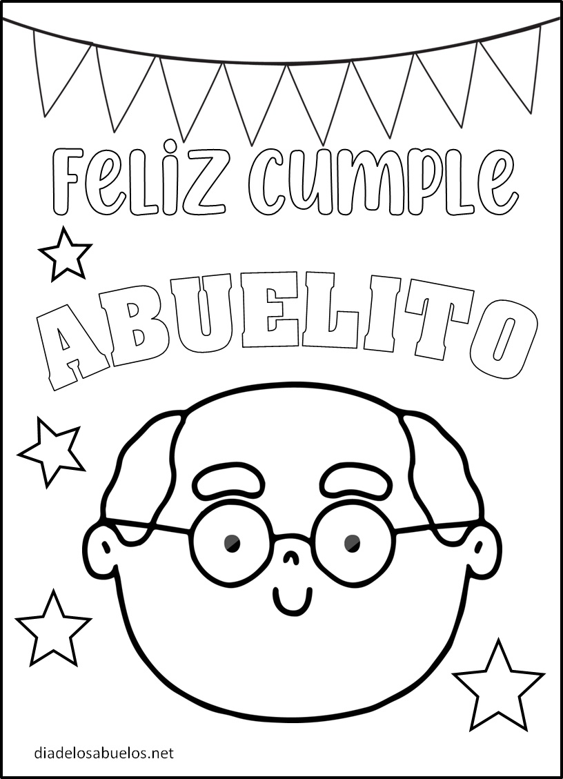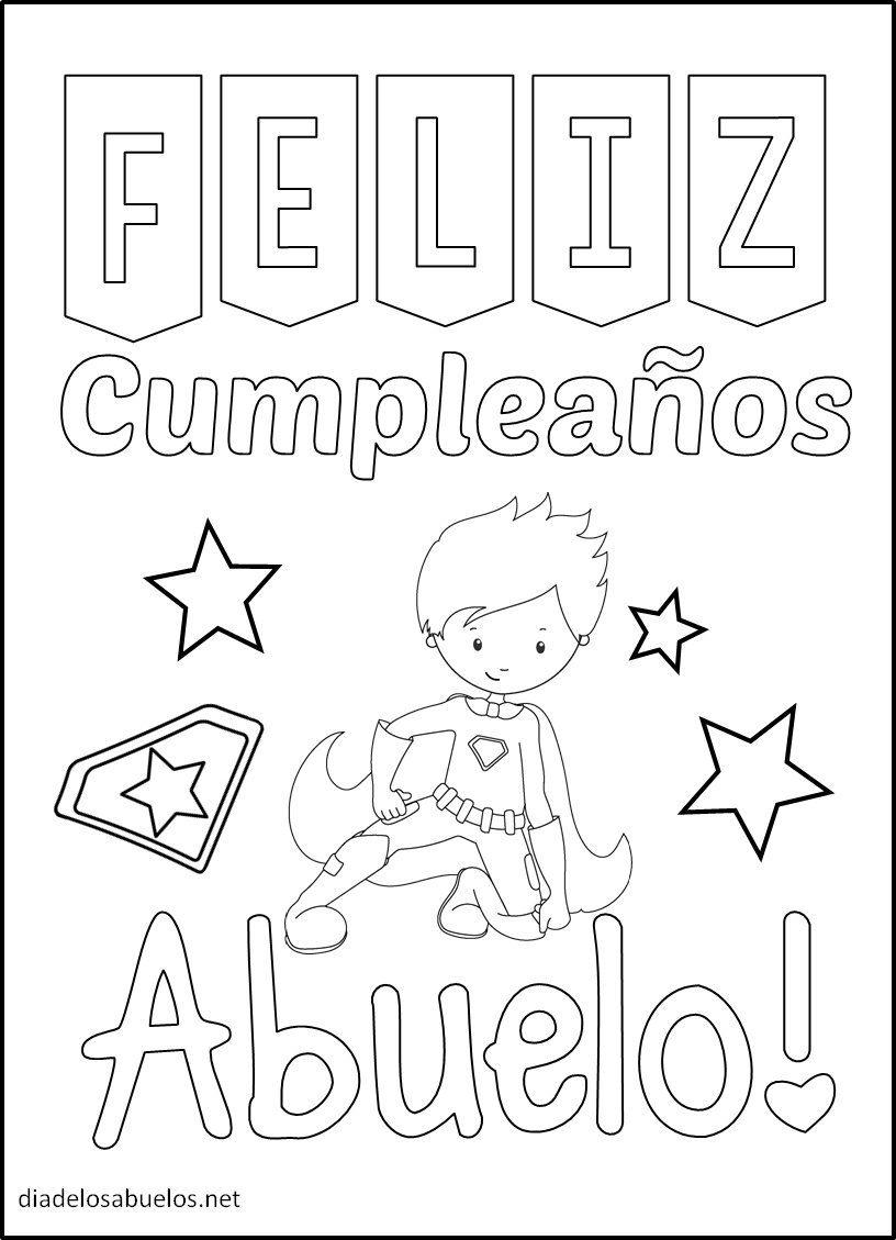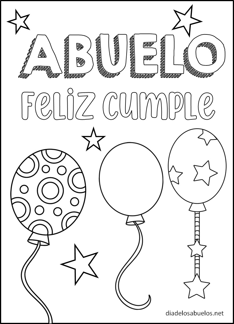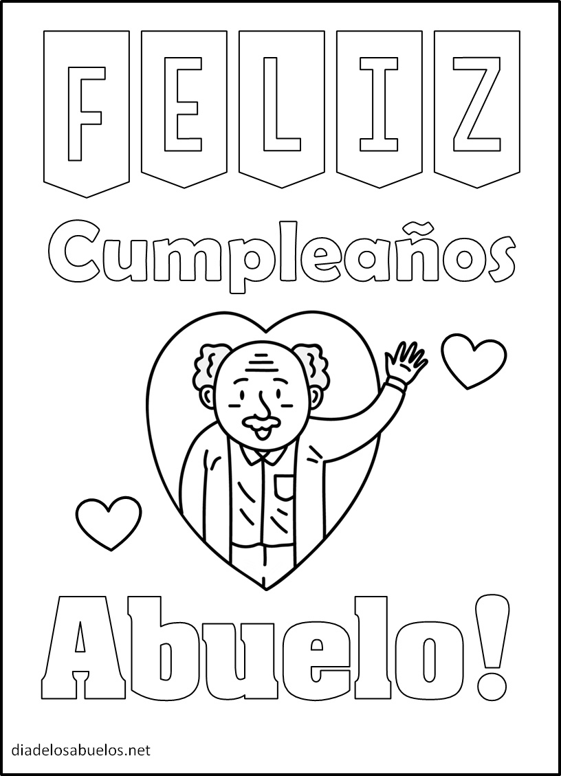 Imágenes para colorear de feliz Cumpleaños Abuelo