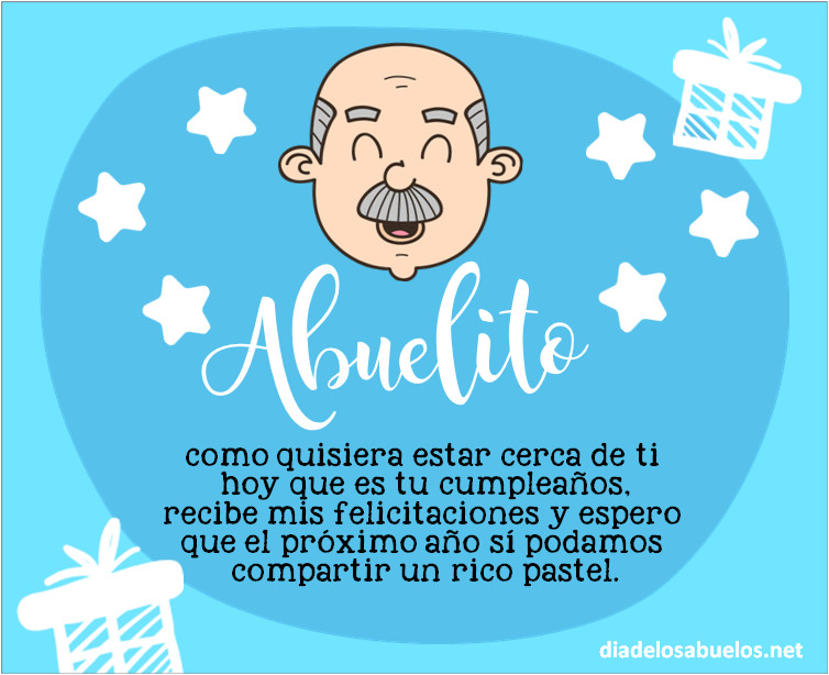 5 Abuelito, como quisiera estar cerca de ti hoy que es tu cumpleaños, recibe mis felicitaciones y espero que el próximo año sí podamos compartir un rico pastel.